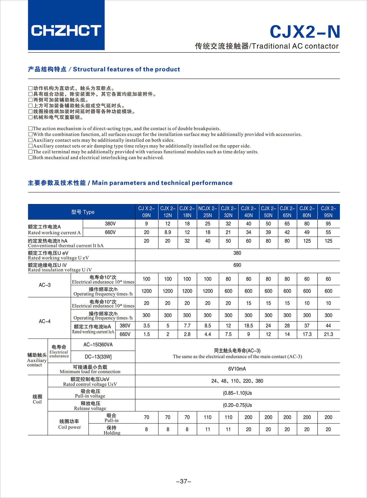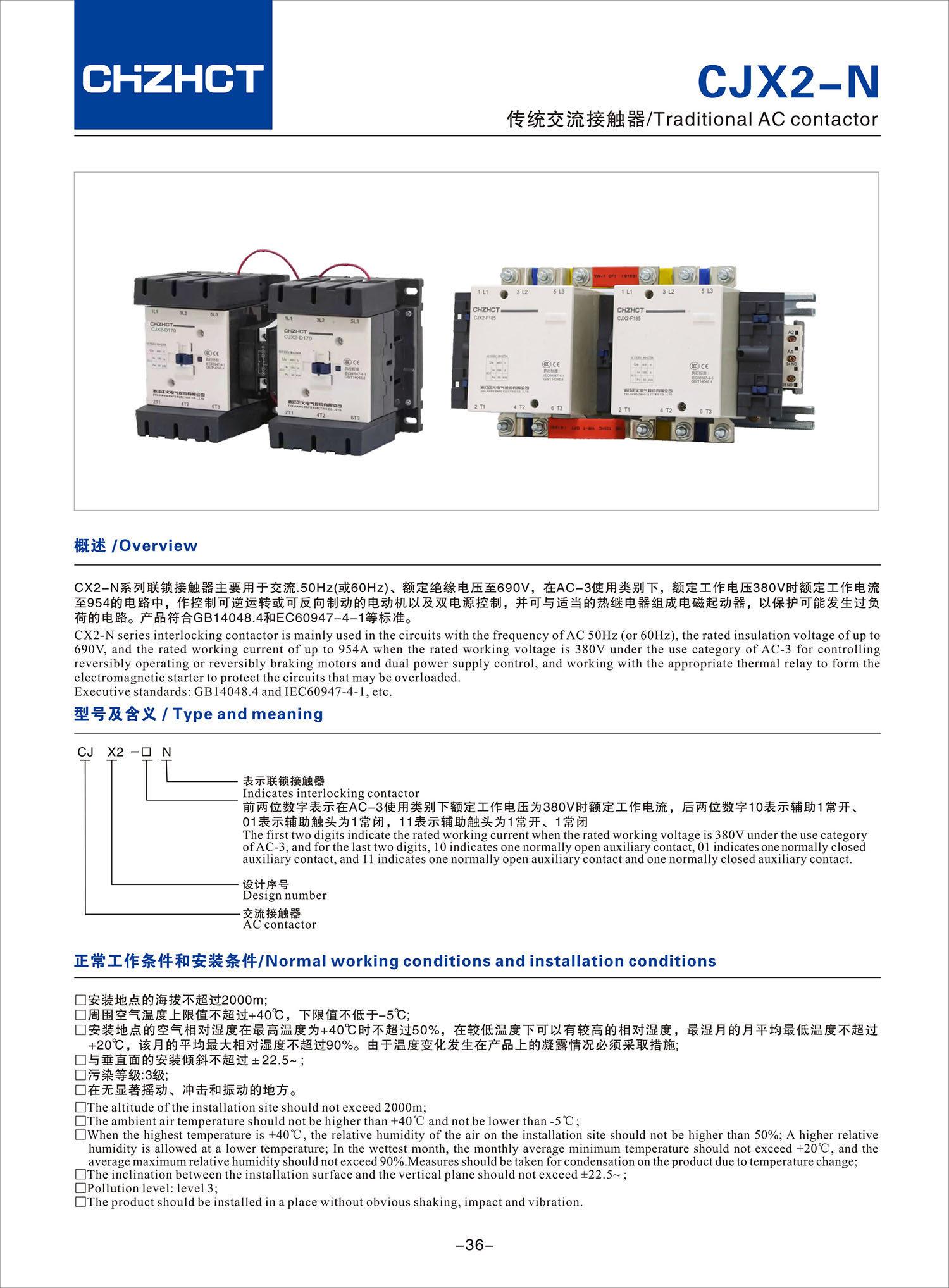 CJX2-N傳統(tǒng)交流接觸器產(chǎn)品說明書