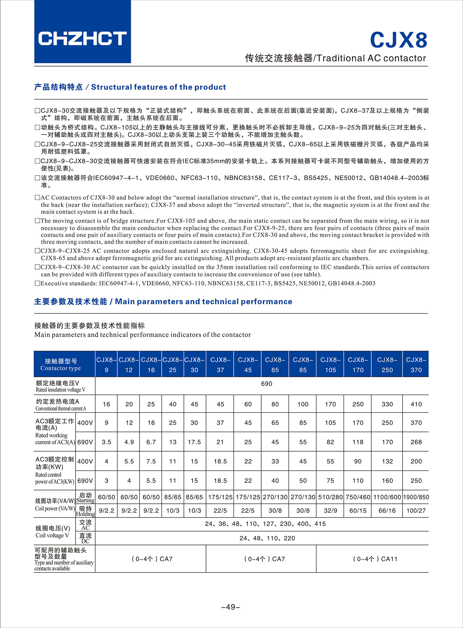 CJX8傳統(tǒng)交流接觸器產(chǎn)品說明書