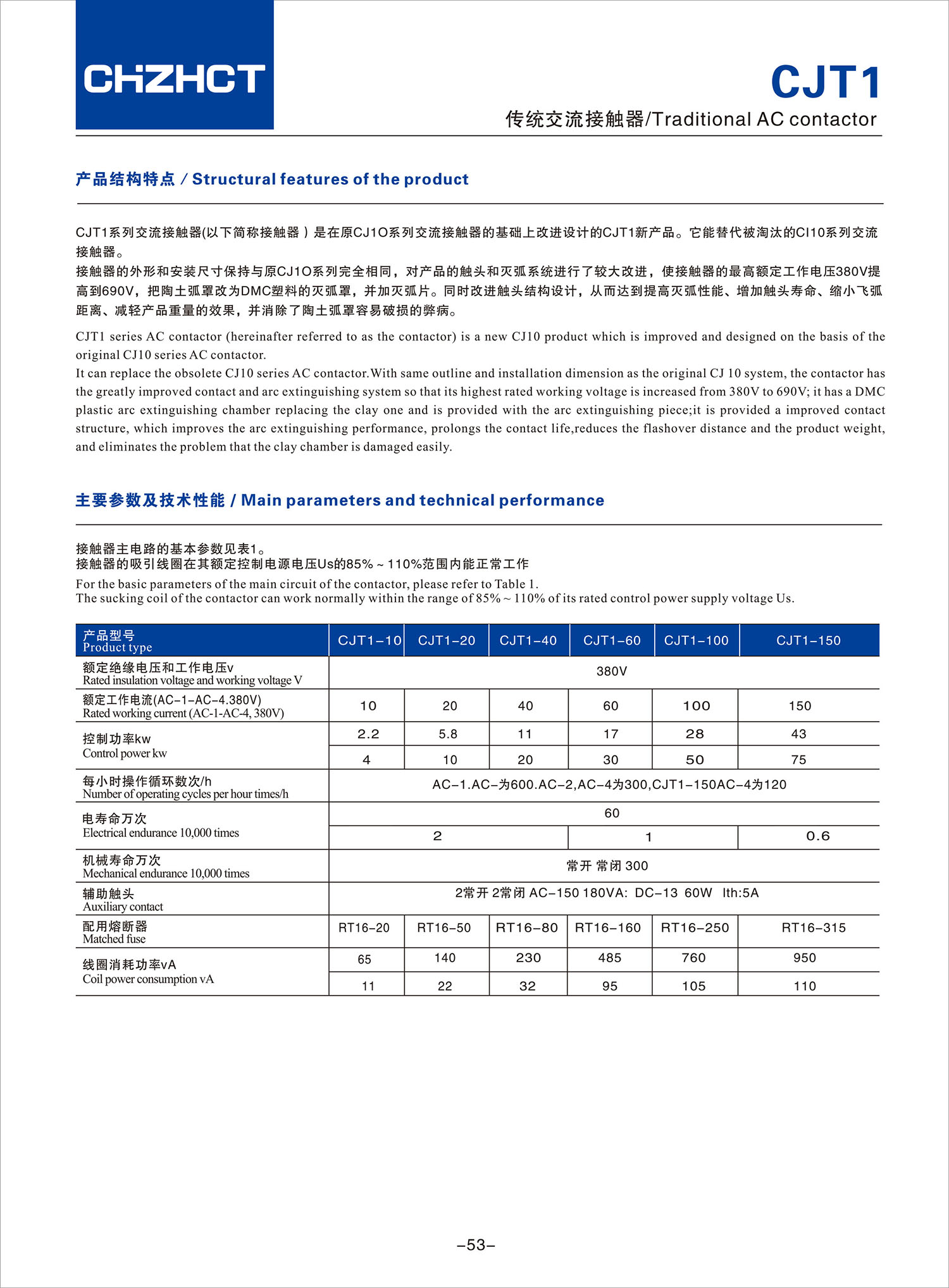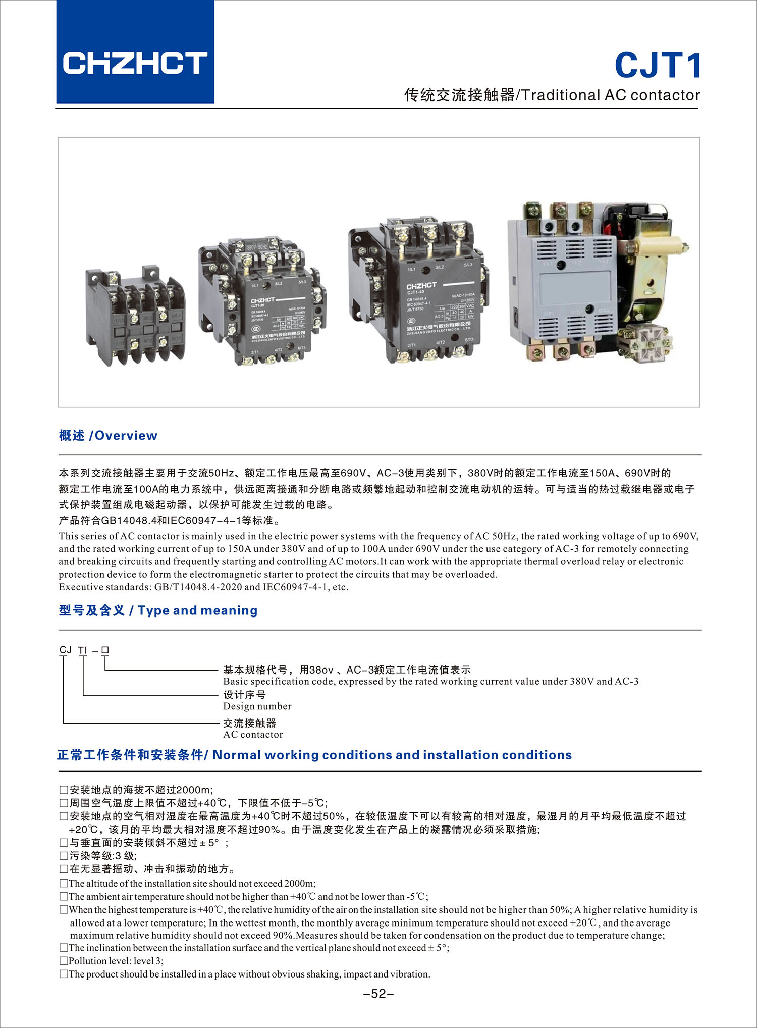 CJT1傳統(tǒng)交流接觸器產(chǎn)品說明書