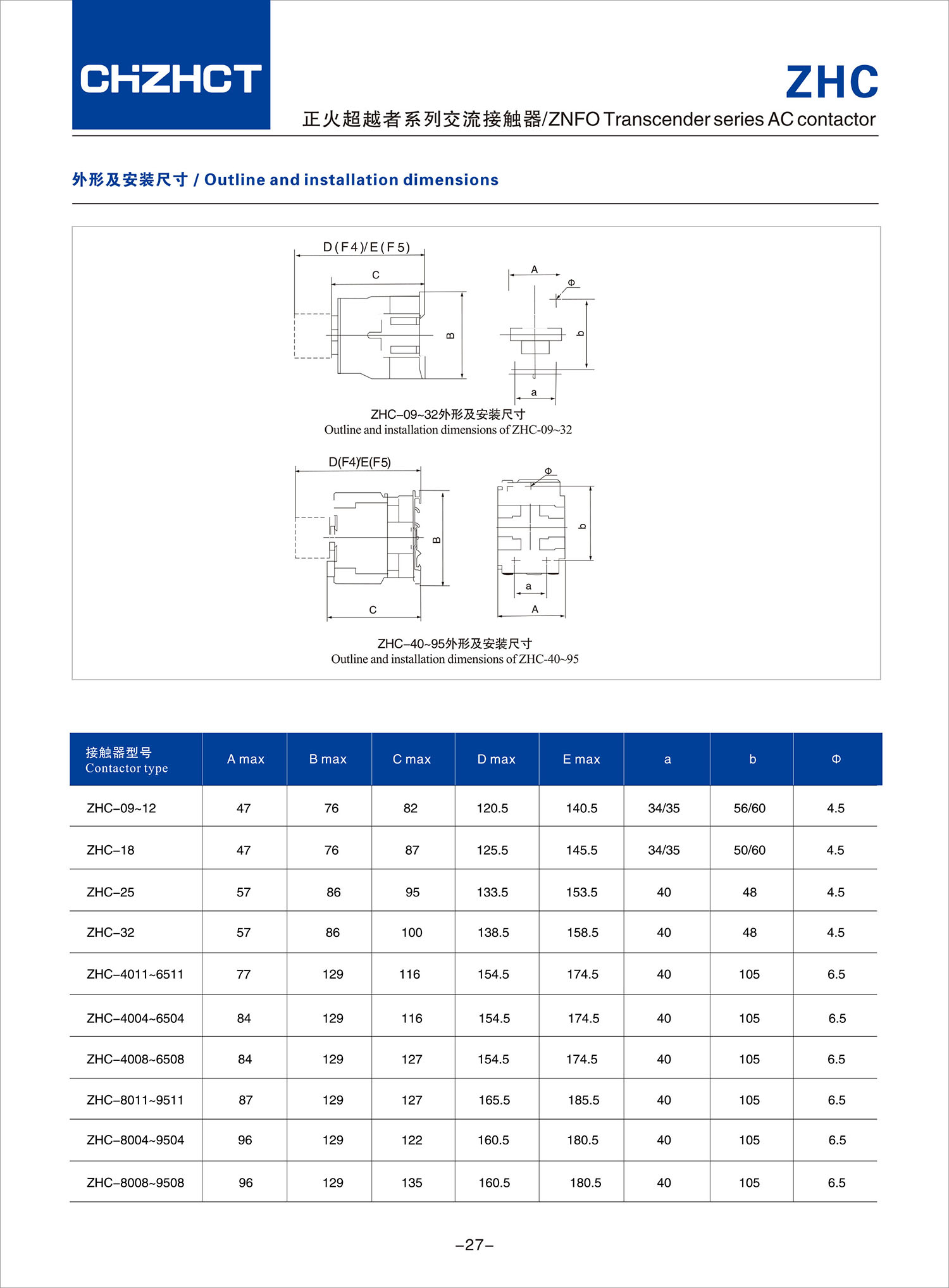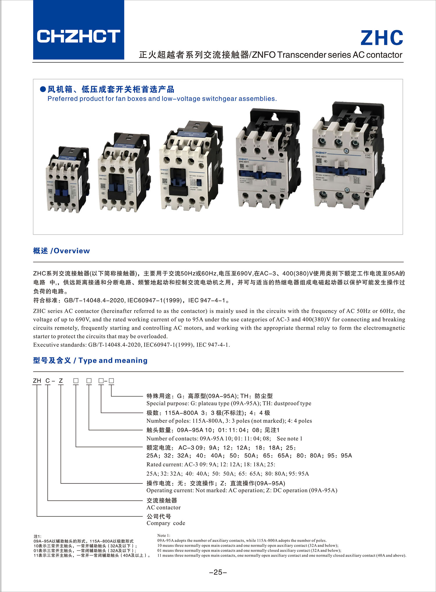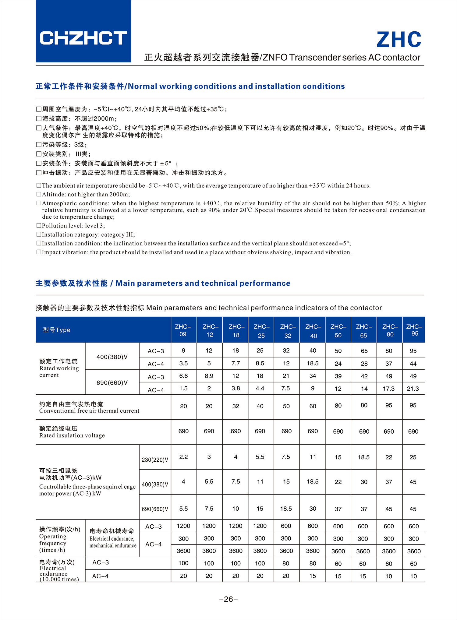 ZHC 正火超越者系列交流接觸器產(chǎn)品說明書