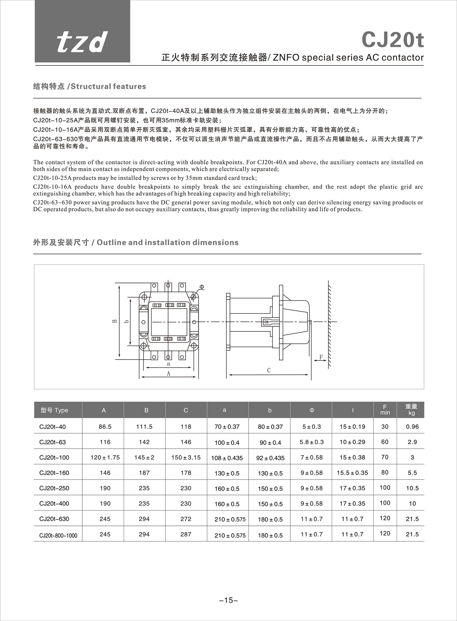 CJ20t 正火特制系列交流接觸器產(chǎn)品說明書