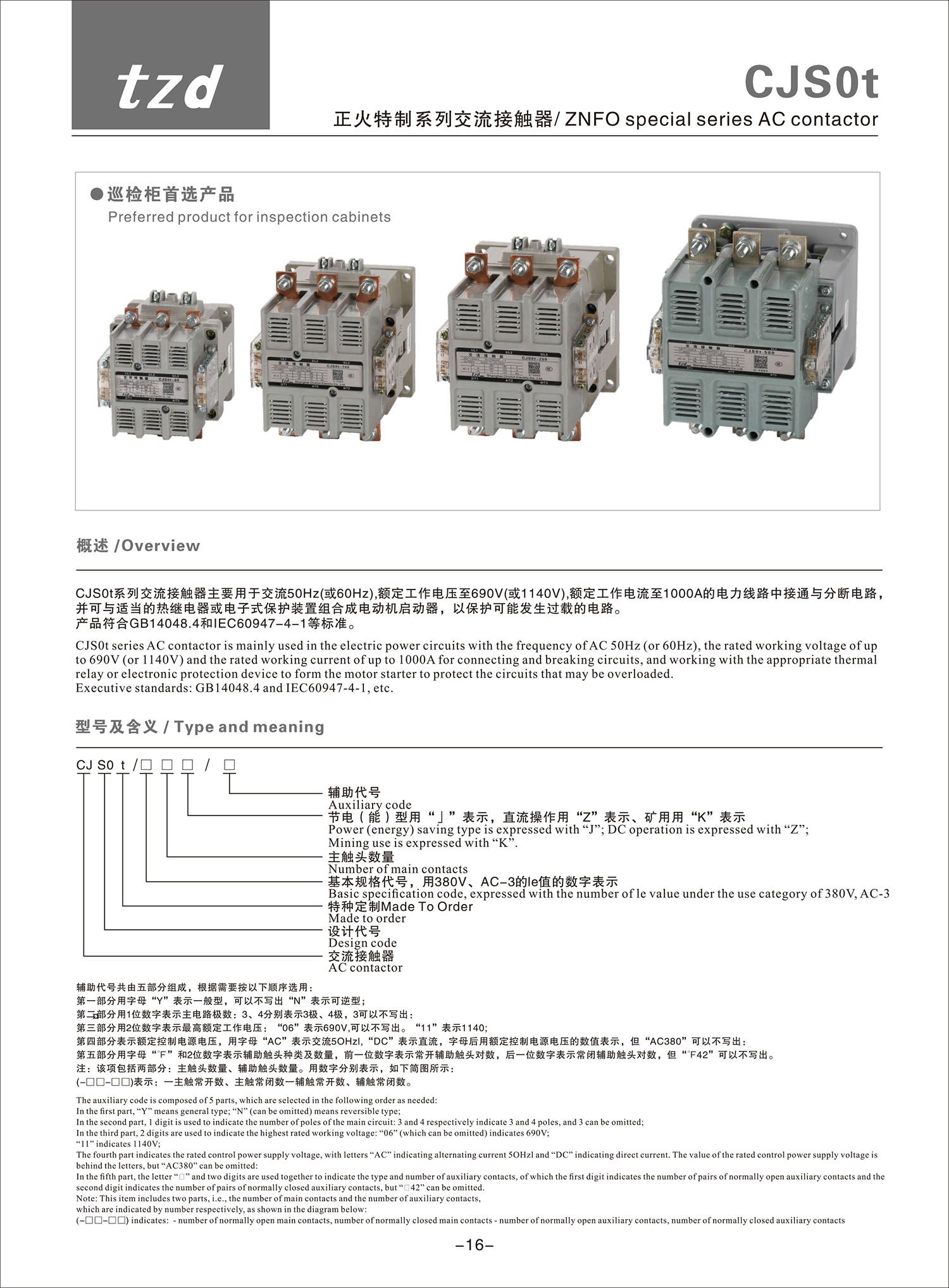 CJS0t 正火特制系列交流接觸器產(chǎn)品說明書